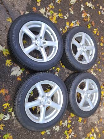 4 Mounted Michelin X-Ice Snow Tires, size 225/55R/17. Excellent (9/32”) tread. 5 spoke, aluminum wheels, 17X7.5”, 5X114 bolt pattern. Includes TPMS and storage bags. $450 for the set