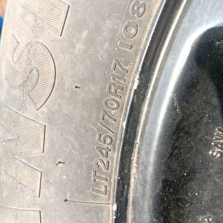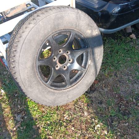 Tire and rim 6 lug off a 2017 chevy 1500 truck aluminum rim gm . Tire has good tread holds air asking 50.00. 380 eighttsi.xxseven.3three8.z.nero
