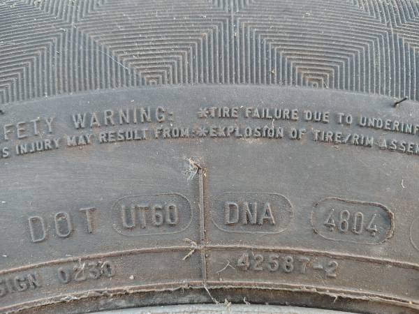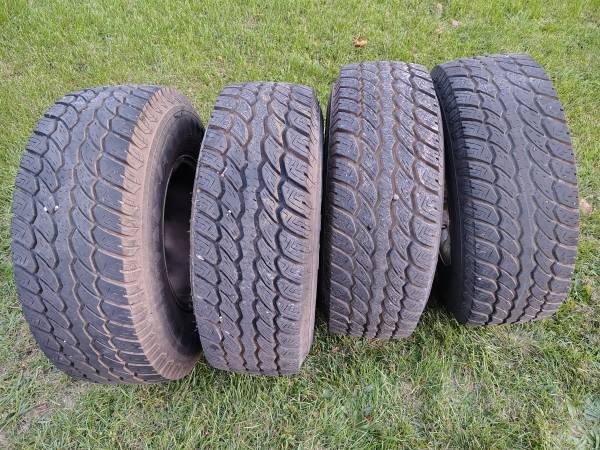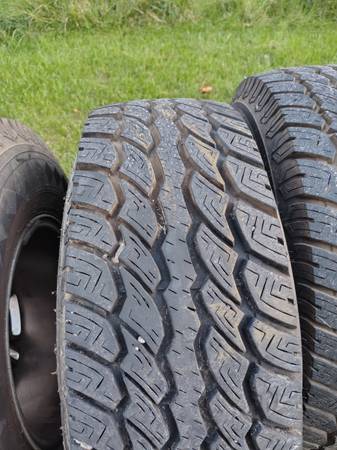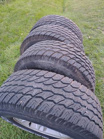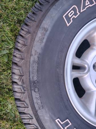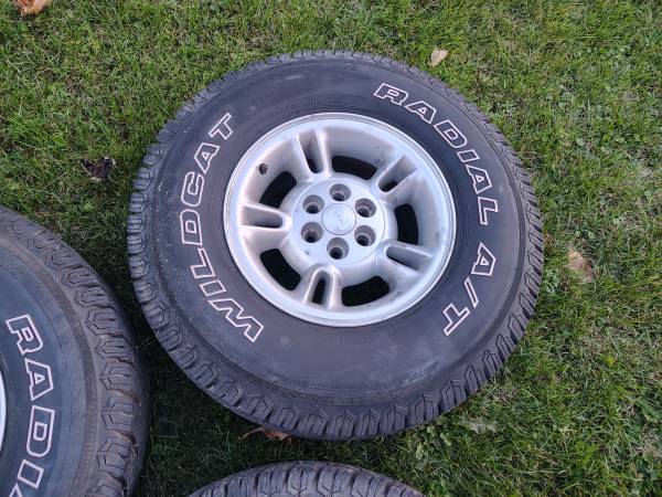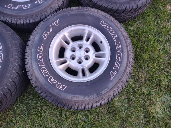OEM 15 inch wheels that were on a 1997 Dodge Dakota 4x4. The wheels are in excellent condition, and no damage. All four tires hold air and have lots of tread but the tires are old and starting to develop fine cracks on the outer side walls...no cracking on the tread areas. Wheels are perfectly straight and no curb rash. These are the same wheels used on the Durango and should fit 97 to 2004 model years. 6x114.3 bolt pattern. Tire size is 31x10 50r15