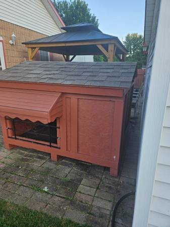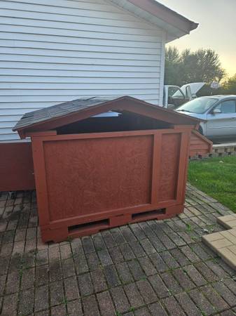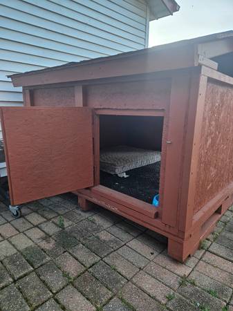 FIRM ON PRICE...SUPER HEAVY DUTY DOB BOX THAT WAS MADE FOR MY HUSKY BUT WITH THE HEAT AND HIS SPOILDNESS HE NEVER HAS TO USE IT,, MEASUREMENTS ARE AS FOLLOWS: 64 WIDE X 71 LONG X 56TALL AT ITS PEAK...BOX WAS BUILT LAST YEAR AND ITS NOT LIGHT.. HAS IRON FENCING IN THE WINDOW..BRING A TRAILER IF BUYING IT AND AN EXTRA PERSON FOR 2 PEOPLE ARE NOT PICKING IT UP..THIS BOX WILL LAST ANY DOG MANY YEARS...THNX FOR LOOKING