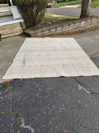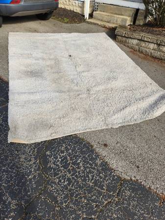 1 4.5x6 cream colored rug, 1 8x10 light grey shag rug, 1 8x10 premium thick rug pad, 1 partly used jug of carpet cleaning solution. On curb. All approx 5 yrs old. Need good cleaning but should clean well. on curb, free, first come first served. 202 Rosslyn Ave