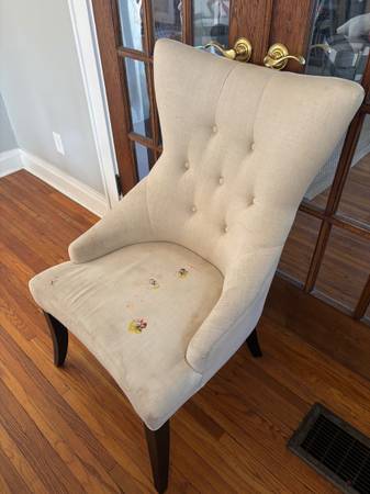 FREE dining chairs. One has water spots and one has dog prints. On alley behind First between Glenn and Westwood at navy garage.