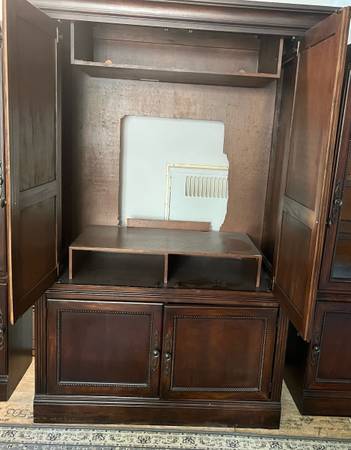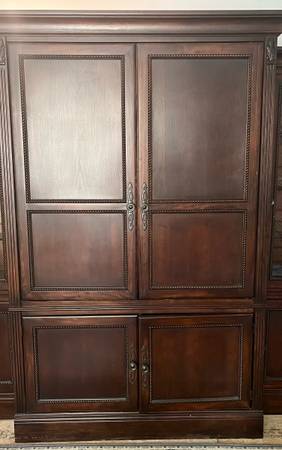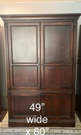 Very nice and in great shape. Original cost from Macys over $2500. Could also be converted into a dry bar. Center console is 49” wide by 80” high. Center console is heavy so you will need large truck and at least 2-3 people to carry but only have one step up and 2 steps down. It is located a few feet from front door.