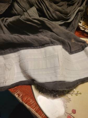 A very nice pair of long slate grey drapes..they look sad because they are very wrinkled but they are that cotton/linen material and I think they are 90+in Long. A nice vintage lounge chair and...