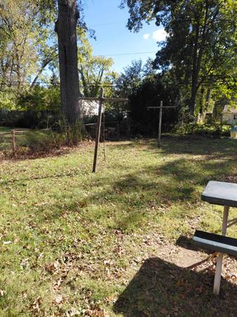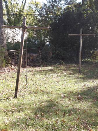 Two steel T-Post clothesline poles. You have to DIG THEM UP and NO CUTTING THEM FROM THE GROUND as they are in concrete. I will not pay you to take them.