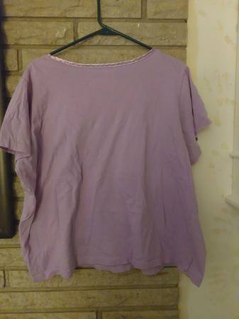 I have for free one ladies sleep shirt, lavender in color, size L. There are no rips or tears.